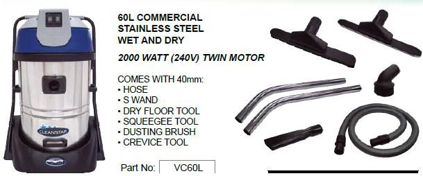- CleanStar Wet N Dry Vac 60L Stainless 2 Vac Motors