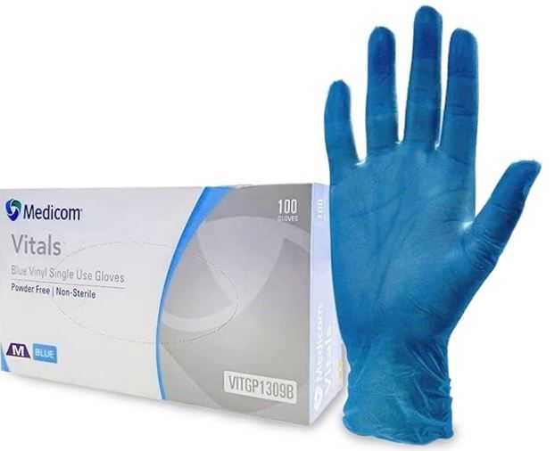 - Powder Free Blue Vinyl Gloves Medium Box 100
