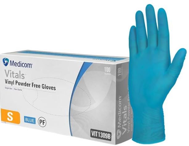 - Powder Free Blue Vinyl Gloves Small Box 100