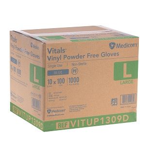 - CTN of 10 x 100 Large BLUE Powder free gloves Vinyl